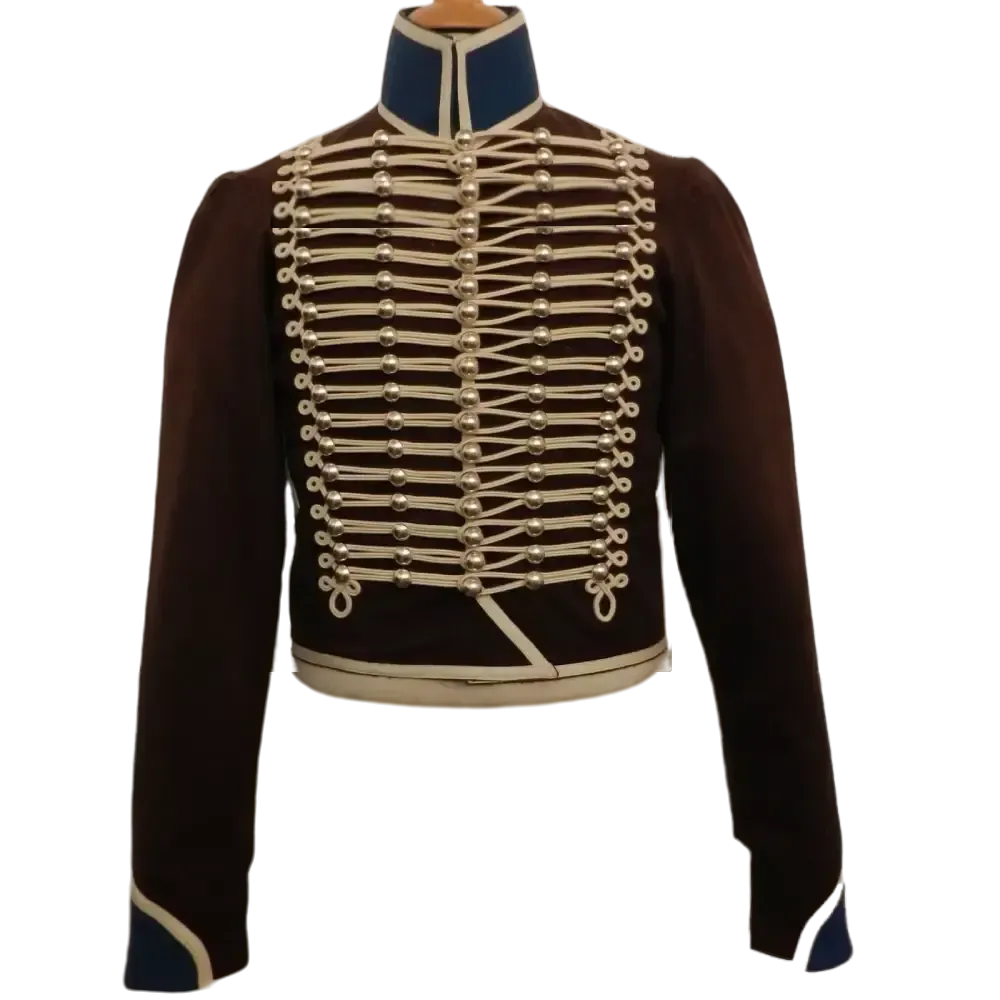 The Mens Dolman 2nd Hussar Troop Military Jacket is a distinguished piece inspired by historical military uniforms. With its intricate detailing and luxurious materials, this jacket is ideal for formal events, themed gatherings, or as a statement piece in any wardrobe.