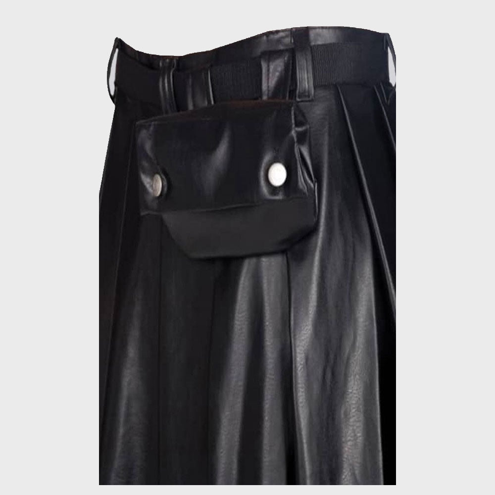 New Design Black Scottish Leather Utility Kilt – Bold and Functional